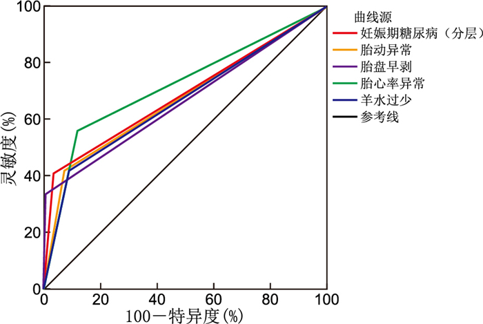 Objective To analyze the risk factors of fetal intrauterine distress and their impact on neonatal prognosis, providing a basis for clinical intervention. Methods A total of 107 cases of intrauterine distress (observation group) and 107 normal pregnant women (control group) admitted to Hangzhou First People' s Hospital from January 2022 to December 2024 were enrolled, and the birth outcomes of neonates in the two groups were compared, and the risk factors affecting the occurrence of intrauterine distress were analyzed by logistic regression analysis and ROC working curve. Results Univariate analysis showed that abnormal umbilical cord blood flow, abnormal fetal heart rate, abnormal fetal movement, oligohydramnios, abnormal umbilical cord, placental abruption, gestational hypertension, and gestational diabetes mellitus were risk factors for fetal intrauterine distress (P < 0.05). Multivariate logistic regression analysis revealed that abnormal fetal heart rate, oligohydramnios, placental abruption, abnormal fetal movement, and gestational diabetes mellitus are independent risk factors for fetal distress (P < 0.05). ROC working curve analysis showed that the AUC of abnormal fetal heart rate, oligohydramnios, placental abruption, abnormal fetal movement and gestational diabetes mellitus was greater than 0.7, and the sensitivity (78.9%, 72.6%, 70.1%, 63.2%, 82.4%) and specificity (75.6%, 69.3%, 71.8%, 74.5%, 68.7%) were high. The 5-minute Apgar score was < 7 in the observation group, and the number of cases of neonatal asphyxia, hypoglycemia, hyperbilirubinemia, and fetal growth restriction were higher than those in the control group, and the perinatal mortality rate and Neonatal Intensive Care Unit (NICU) admission rate were also higher than those in the control group (P < 0.05). Conclusion Abnormal fetal heart rate, oligohydramnios, placental abruption, abnormal fetal movement, and gestational diabetes mellitus are risk factors for fetal intrauterine distress, and the above factors are likely to lead to adverse birth outcomes. Prenatal monitoring and perinatal care should be strengthened to improve perinatal outcomes.