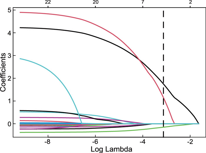 Objective   To identify sensitive indicators for assessing pulmonary infection risk in stroke patients following left-right contralateral C7 nerve transfer surgery, and to develop and validate a risk-prediction nomogram to support clinical condition assessment and clinical decision-making.   Methods   A retrospective analysis was conducted on 294 stroke patients who underwent left-right contralateral C7 nerve transfer surgery at Jing' an District Central Hospital between March 2021 and December 2023. Patients were stratified into an infection group (n=29) and a non-infection group (n=265) based on standardized diagnostic criteria for pulmonary infection. Demographic statistical indicators, laboratory indicators and other data of the two groups were collected. LASSO and logistic regression were used to analyze the risk factors of pulmonary infection after the left-right contralateral C7 nerve transfer surgery of stroke patients. The postoperative pulmonary infection risk prediction model was established, and the ROC curve was evaluated to analyze the efficiency and verify the stability of the model.   Results   There were significant differences in age, diabetes mellitus, peak expiratory flow (PEF), FEV1/FVC, VCmax, operation time, Beck score, American Society of Anesthesiologists (ASA) grading, and preoperative EMG abnormalities between the two groups (P < 0.05). Multifactor LASSO regression analysis showed that when λ. 1se=0.040 7, 7 predictors finally fit the characteristics. Multivariate analysis identified that age >60 years old and high Beck score as independent risk factors, while PEF≥320 L/min and FEV1/FVC≥92% were protective factors (P < 0.05). The model achieved an AUC of 0.983 (95% CI: 0.968-0.998), with sensitivity and specificity of 0.931 and 0.936, respectively. Internal validation Bootstrap (B=1 000) confirmed stable predictive performance, and decision curve analysis showed clinical utility.   Conclusion   Age>60 years old and elevated Beck score are independent risk factors, whereas PEF≥320 L/min and FEV1/FVC≥92% are protective factors. The nomogram model showed excellent predictive effect on pulmonary infection, and can provide data support for clinical evaluation and decision-making.