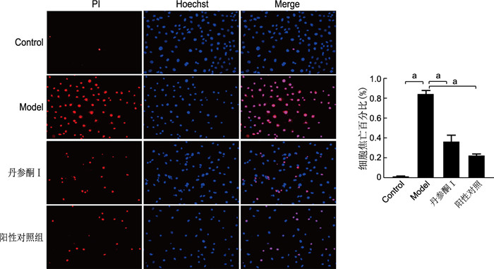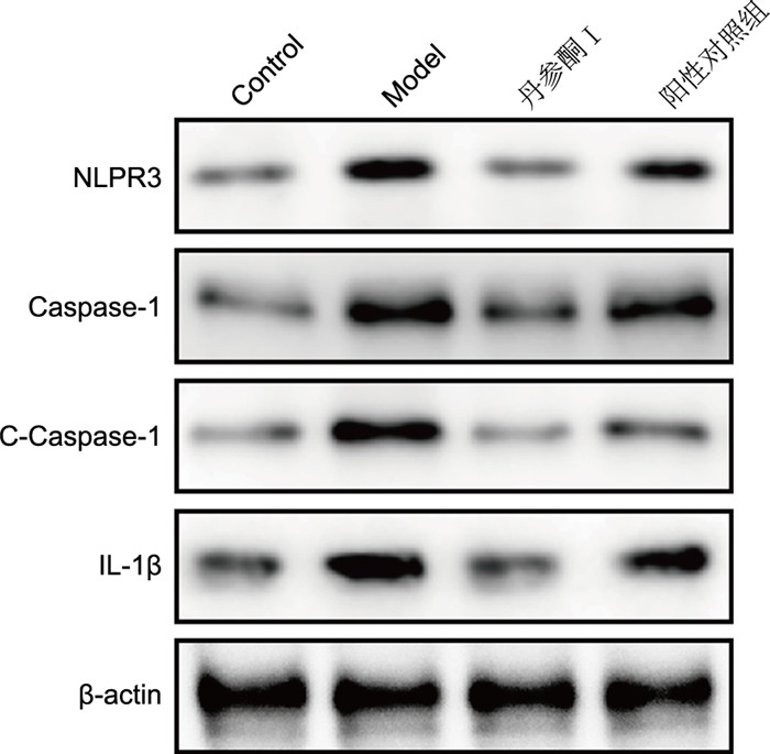Objective  To investigate the inhibitory effect and mechanism of Tanshinone Ⅰ on non-canonical pyroptosis in LPS-induced murine macrophage J774.1 cells.  Methods  A non-canonical pyroptosis model was induced in J774.1 cells by LPS transfection using Lipofecter. Cells were treated with various concentrations of Tanshinone Ⅰ, and 40 μmol/L was selected for subsequent experiments based on cytotoxicity screening. LDH release assay was used to assess cell toxicity. The expression levels of Caspase-11, GSDMD-N, NLRP3, cleaved-Caspase-1, and IL-1β were evaluated by qPCR and Western blot. Pyroptotic cells were observed by immunofluorescence. To explore the signaling pathway, the AMPK inhibitor dorsomorphin was co-administered with Tanshinone Ⅰ.  Results  Tanshinone Ⅰ at a concentration of 40 μmol/L showed no significant toxicity to J774.1 cells (P>0.05). After treatment, cell toxicity decreased from (29.540±2.123) % to (5.887±1.219) % (P=0.018). Compared with the model group, Tanshinone Ⅰ significantly inhibited the expression of Caspase-11, GSDMD-N, NLRP3, Caspase-1, cleaved-Caspase-1, and IL-1β (P < 0.05), and reduced the proportion of pyroptotic cells, indicating its ability to suppress non-canonical pyroptosis. Additionally, Tanshinone Ⅰ upregulated p-AMPK expression, whereas the AMPK inhibitor dorsomorphin reversed this effect, suggesting that its protective role may be mediated through activation of the AMPK pathway.  Conclusion  Tanshinone Ⅰ can inhibit LPS-induced non-canonical pyroptosis in J774.1 cells by activating the AMPK pathway, thereby alleviating inflammatory responses and exerting anti-inflammatory and cytoprotective effects.