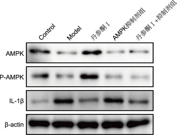 •   Objective  To investigate the inhibitory effect and mechanism of Tanshinone Ⅰ on non-canonical pyroptosis in LPS-induced murine macrophage J774.1 cells.  Methods  A non-canonical pyroptosis model was induced in J774.1 cells by LPS transfection using Lipofecter. Cells were treated with various concentrations of Tanshinone Ⅰ, and 40 μmol/L was selected for subsequent experiments based on cytotoxicity screening. LDH release assay was used to assess cell toxicity. The expression levels of Caspase-11, GSDMD-N, NLRP3, cleaved-Caspase-1, and IL-1β were evaluated by qPCR and Western blot. Pyroptotic cells were observed by immunofluorescence. To explore the signaling pathway, the AMPK inhibitor dorsomorphin was co-administered with Tanshinone Ⅰ.  Results  Tanshinone Ⅰ at a concentration of 40 μmol/L showed no significant toxicity to J774.1 cells (P>0.05). After treatment, cell toxicity decreased from (29.540±2.123) % to (5.887±1.219) % (P=0.018). Compared with the model group, Tanshinone Ⅰ significantly inhibited the expression of Caspase-11, GSDMD-N, NLRP3, Caspase-1, cleaved-Caspase-1, and IL-1β (P < 0.05), and reduced the proportion of pyroptotic cells, indicating its ability to suppress non-canonical pyroptosis. Additionally, Tanshinone Ⅰ upregulated p-AMPK expression, whereas the AMPK inhibitor dorsomorphin reversed this effect, suggesting that its protective role may be mediated through activation of the AMPK pathway.  Conclusion  Tanshinone Ⅰ can inhibit LPS-induced non-canonical pyroptosis in J774.1 cells by activating the AMPK pathway, thereby alleviating inflammatory responses and exerting anti-inflammatory and cytoprotective effects.